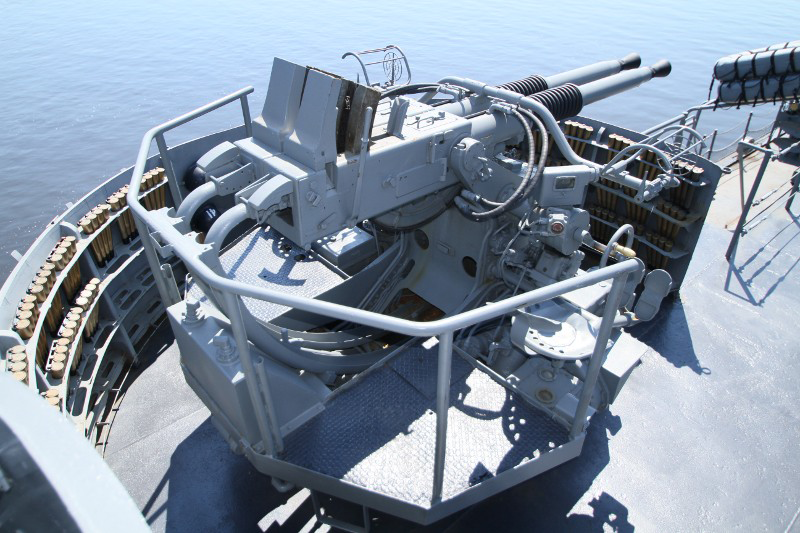 • 2 x single 5 inch/38 cal. dual purpose gun mounts, one fore and one aft.